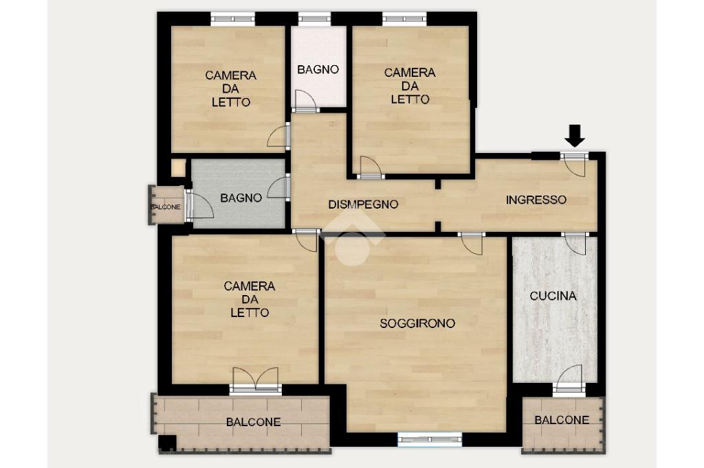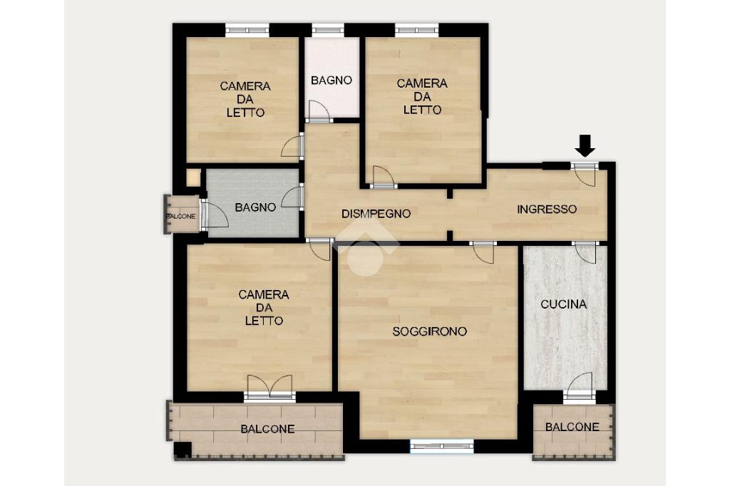 L'ingresso Vi condurrà all'ampio corridoio su cui si affacciano tutte le stanze della casa. La zona giorno presenta un soggiorno ampio e cucina abitabile, dotata di un balcone di servizio. La zona notte è invece composta da due camere matrimoniali di cui una con balcone, una camera singola e infine i doppi servizi finestrati, uno con vasca e l'altro con doccia.