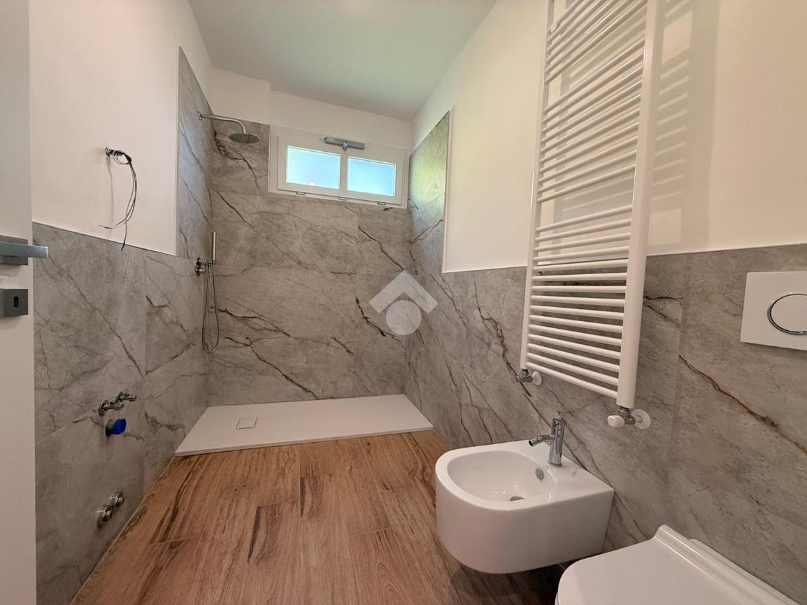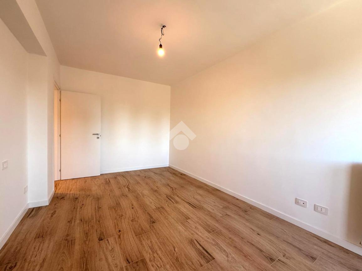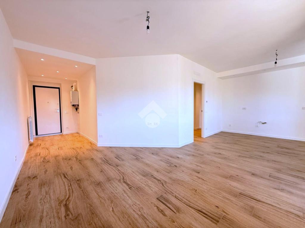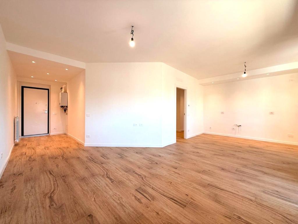 Dall'ingresso verrete accolti direttamente nella luminosa zona living di circa 30 mq con cucina a vista e affaccio su un terrazzino coperto esposto a sud-ovest. Il disimpegno notte vi condurrà alla camera da letto matrimoniale e alla cameretta oltre ai doppi servizi. Il tutto è caratterizzato da un pavimento in gress porcellanato effetto legno, infissi in doppio vetro PVC e predisposizione aria condizionata, dotato di un impianto di riscaldamento autonomo. Il rivestimento del bagno padronale ha un effetto grigio pietra e sanitari sospesi. A completare l'immobile un comodo box singolo di 21 mq.