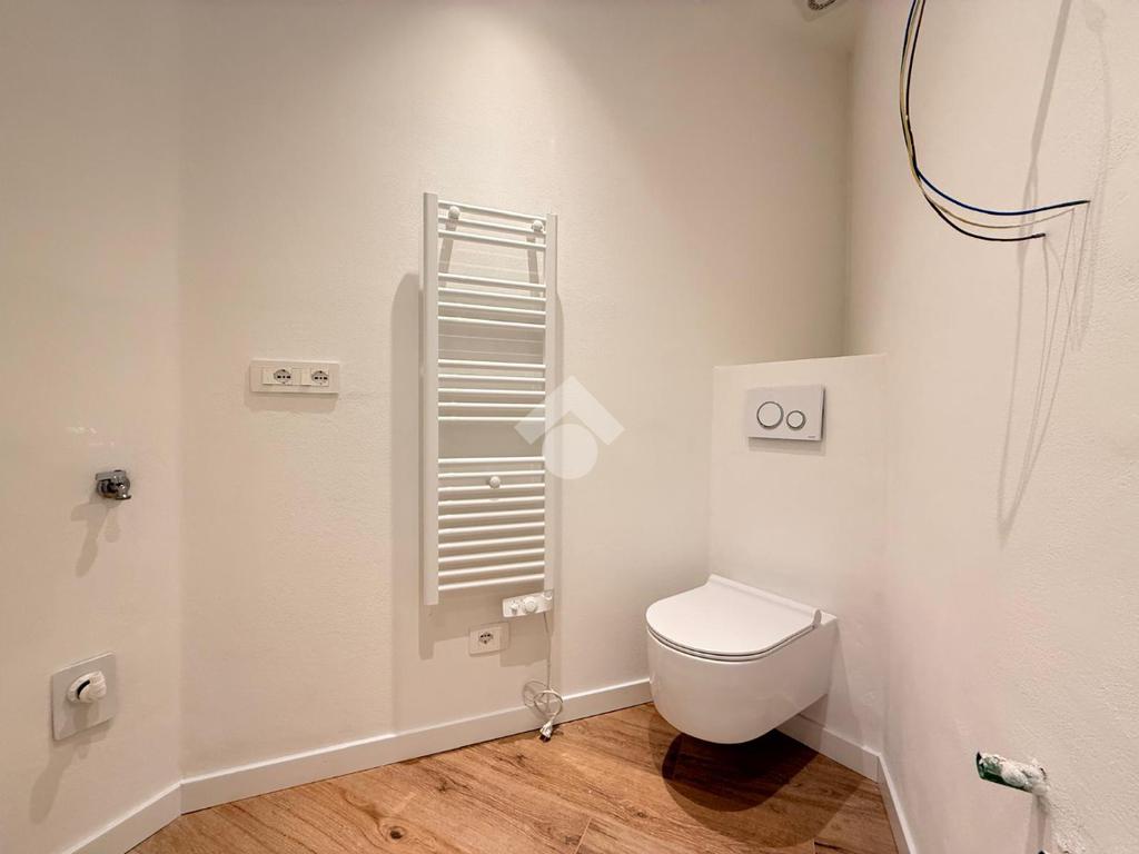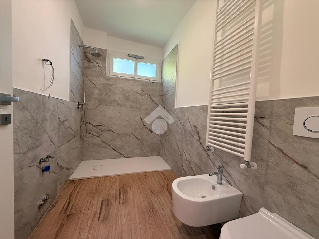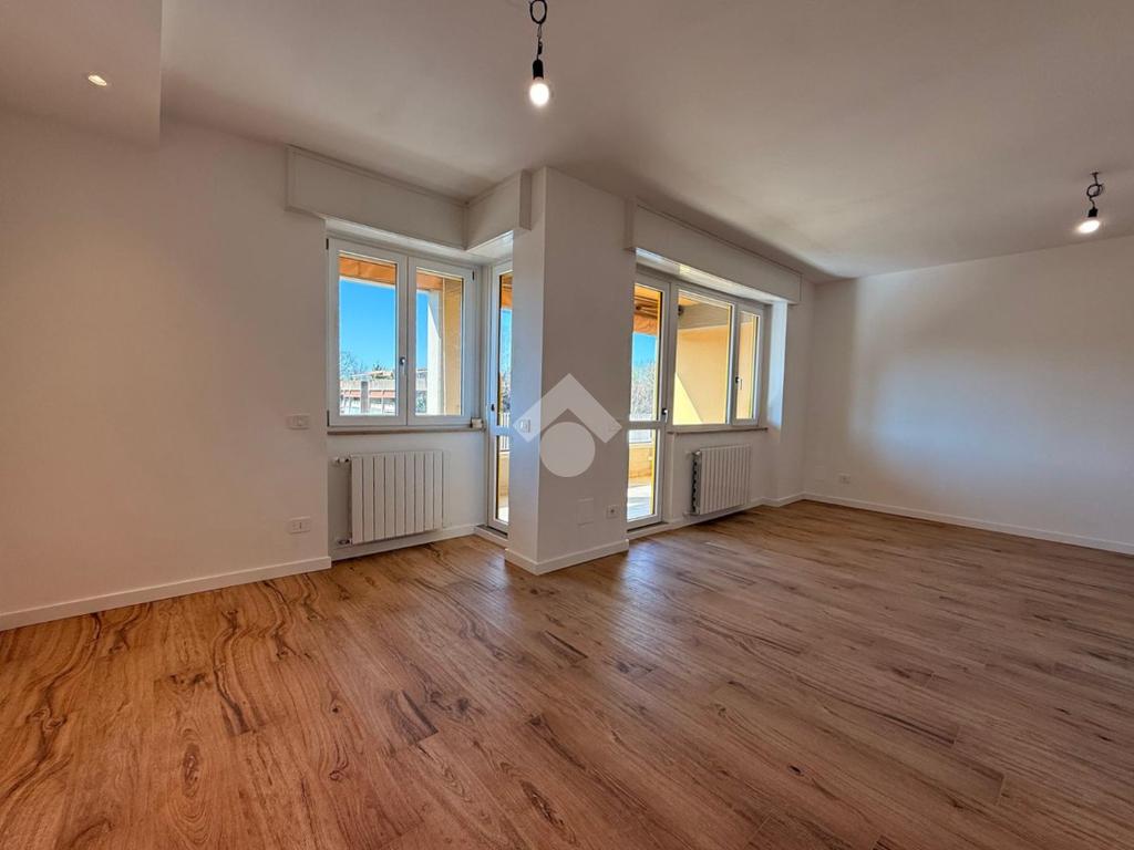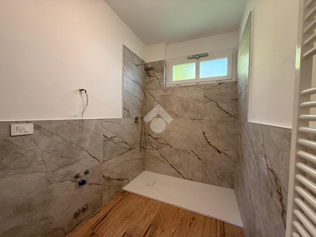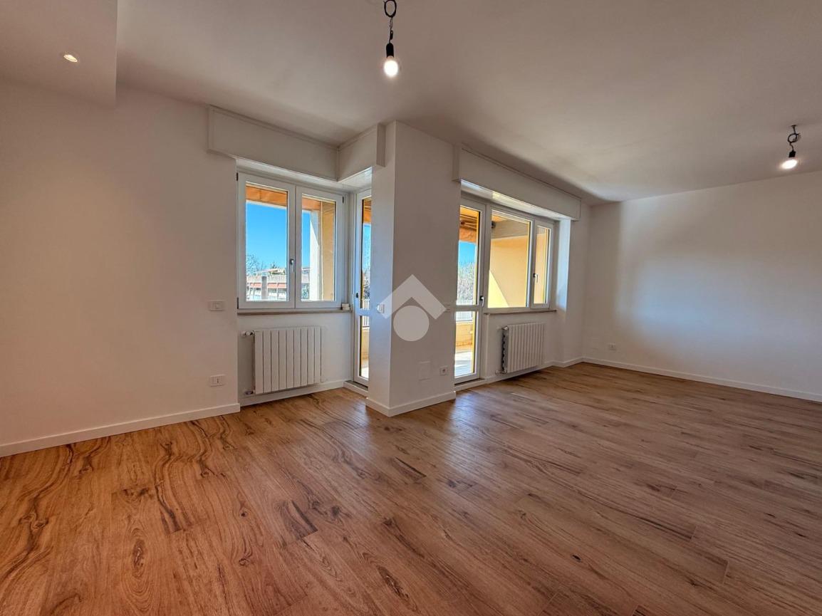 Dall'ingresso verrete accolti direttamente nella luminosa zona living di circa 30 mq con cucina a vista e affaccio su un terrazzino coperto esposto a sud-ovest. Il disimpegno notte vi condurrà alla camera da letto matrimoniale e alla cameretta oltre ai doppi servizi. Il tutto è caratterizzato da un pavimento in gress porcellanato effetto legno, infissi in doppio vetro PVC e predisposizione aria condizionata, dotato di un impianto di riscaldamento autonomo. Il rivestimento del bagno padronale ha un effetto grigio pietra e sanitari sospesi. A completare l'immobile un comodo box singolo di 21 mq.